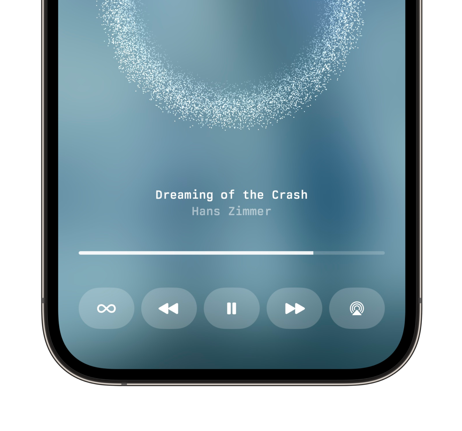 The player experience uses Metal shaders to create a subtle particle effect during playback.
